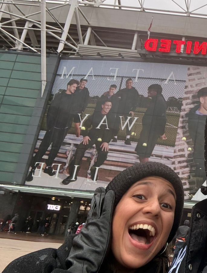 The first photos and videos arrived an hour ago from the city of Manchester, where she will reside as she awaits this afternoon—the long-awaited moment of her young life: to be with other fans in the stands of Old Trafford to watch a football match of her favorite team, which she has loved since childhood!