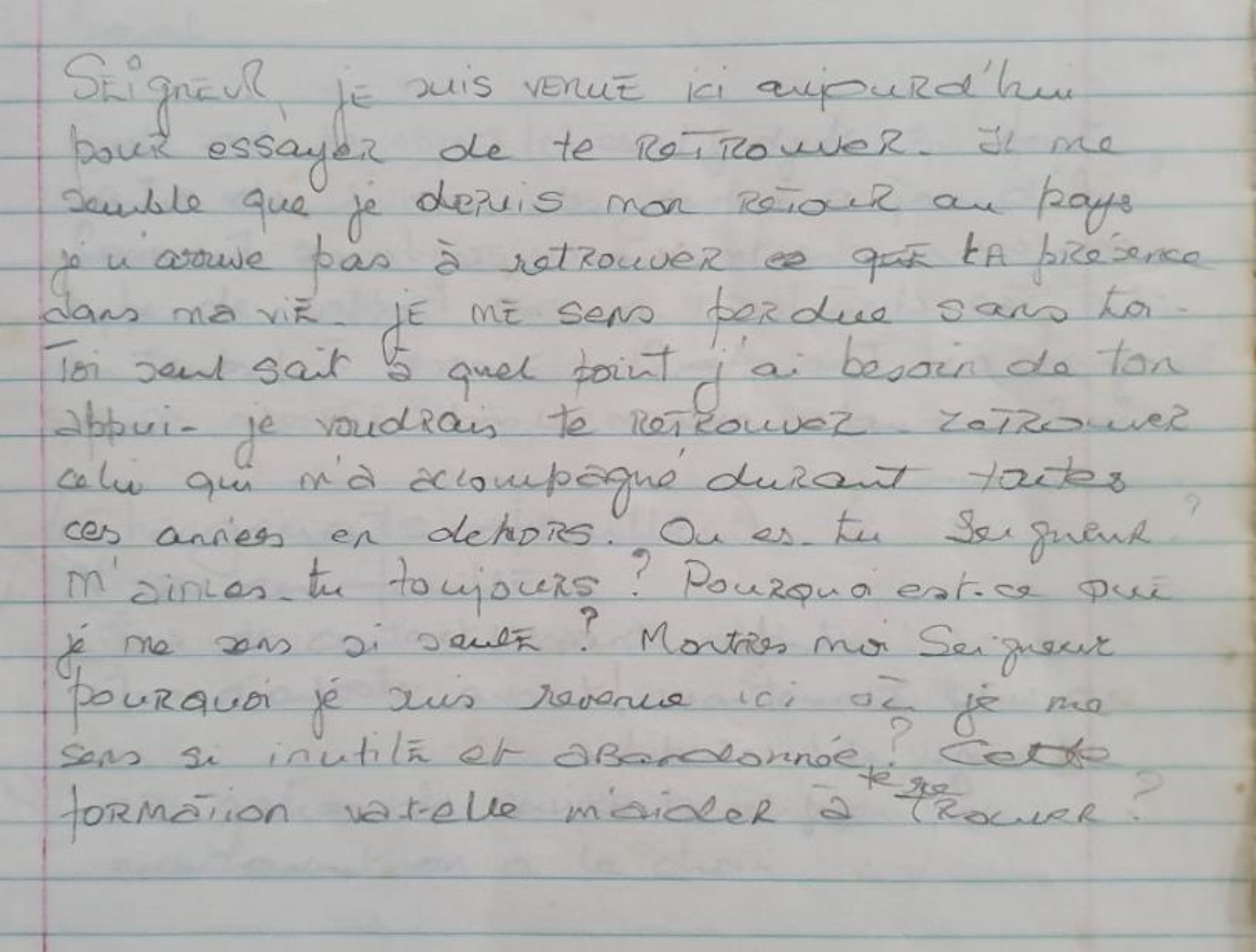 A few weeks later, during a course on The Ancient Testament, thanks to a Word of God spoken by His prophet Jeremiah, and by the priest who was in charge of this course, I found myself in God’s mighty and loving arms, receiving His Spirit of Truth!